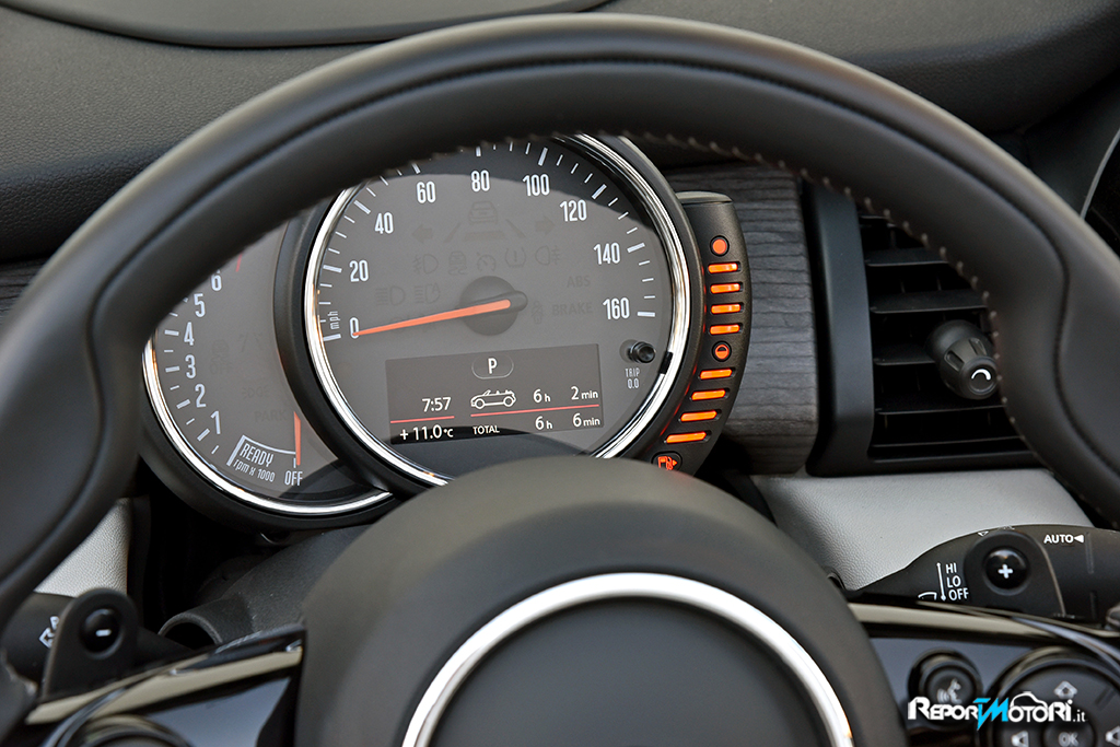 I Mini Driving Modes, di serie nella nuova Mini John Cooper Works Cabrio e disponibili come optional per tutti gli altri modelli, permettono di tarare la vettura secondo le preferenze personali, in modo da accentuare il comfort di guida, la sportività oppure l’efficienza della nuova Mini Cabrio.