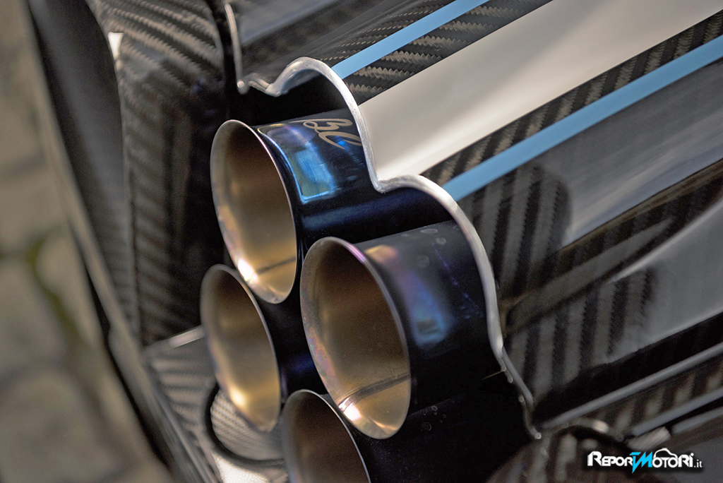 L’impianto di scarico sportivo è sensibilmente più aperto di quello precedente ed è stato studiato tenendo ben presente non solo le prestazioni ma anche il sound: la voce della Pagani Huayra BC deve essere coinvolgente come non mai perché deve regalare al pilota emozioni ad ogni apertura di gas .