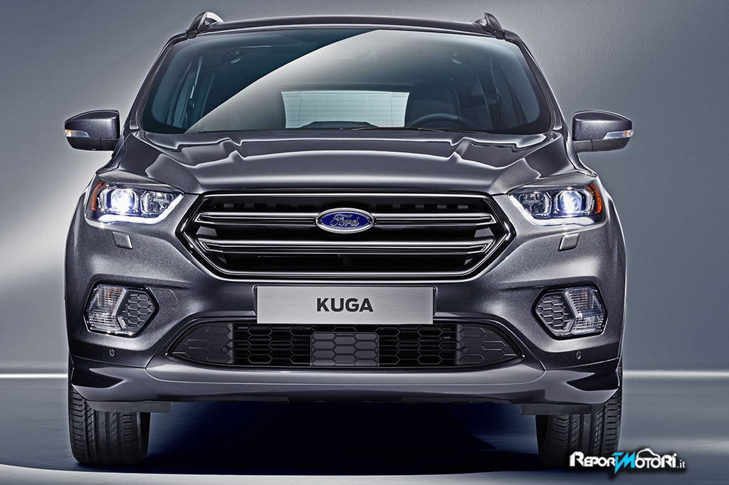 Esternamente il frontale della nuova Ford Kuga si caratterizza per la griglia trapezoidale e per i fari adattivi con luci diurne a LED, internamente tante le novità, rigorosa è la diminuzione di comandi, l’obiettivo era quello di aumentare ergonomia e funzionalità .