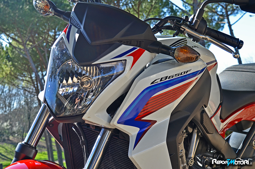 Un look sportivo, una grafica che cattura, il serbatoio interamente in alluminio è snello nonostante accolga oltre 17 litri di benzina, la sella è moderatamente comoda e la sua altezza da terra, pari a 810 mm, permette un facile appoggio del piede a terra: la Honda CB650F è moto concreta, sicura.