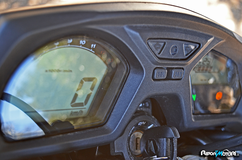 Ottima la presenza dell’ABS a due canali, il suo intervento è sempre discreto e prontissimo e dona sicurezza al pilota anche nelle frenate forti ed in staccata.