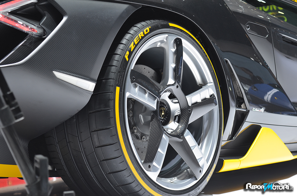 Gli pneumatici Pirelli PZero sono sviluppati appositamente per l’asse posteriore sterzante. Sono montati su esclusivi cerchi anteriori e posteriori rispettivamente da 20”/21”, realizzati in alluminio forgiato. Le razze ad elica, anche in questo caso messe in evidenza dalla fibra di carbonio, mascherano i condotti che estraggono l’aria calda dai freni carboceramici e si ricongiungono in un monodado centrale impreziosito dall’emblema del Toro.