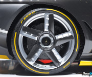 La carrozzeria è totalmente in fibra di carbonio lucida, ed i passaruota irregolari, sia anteriori che posteriori, sono una caratteristica distintiva di questa spaziale Lamborghini .