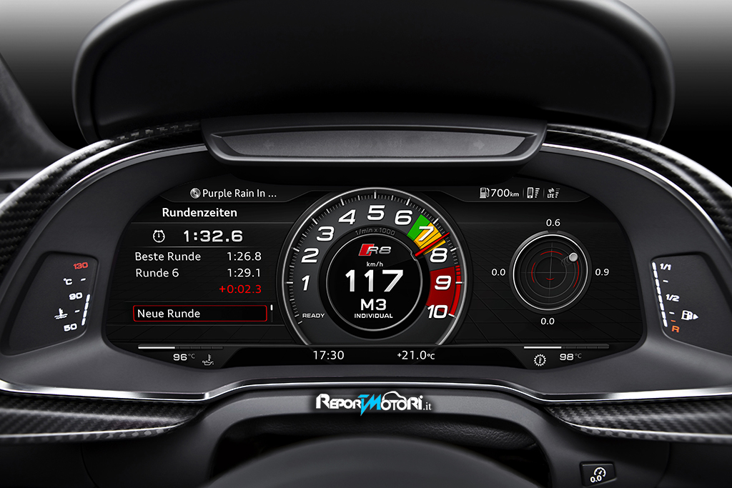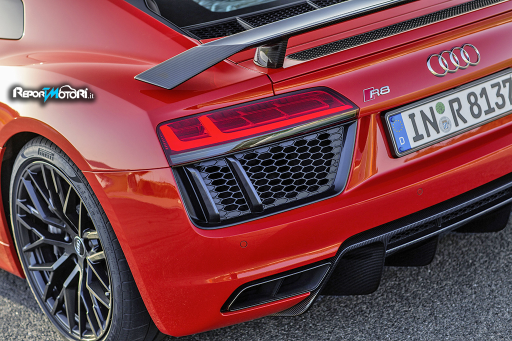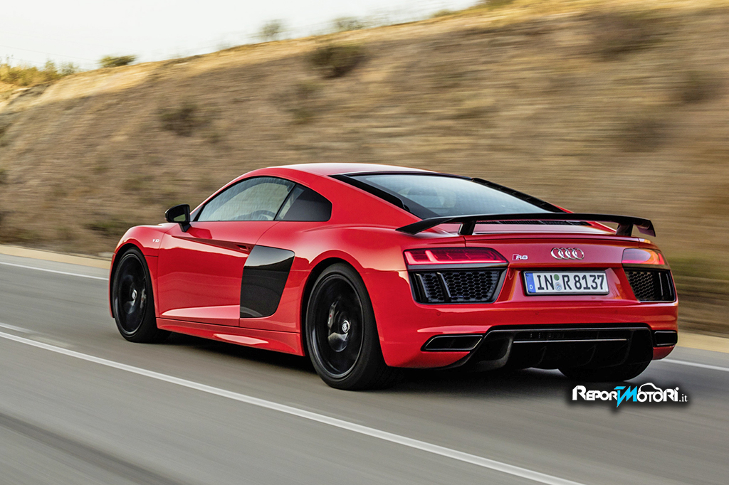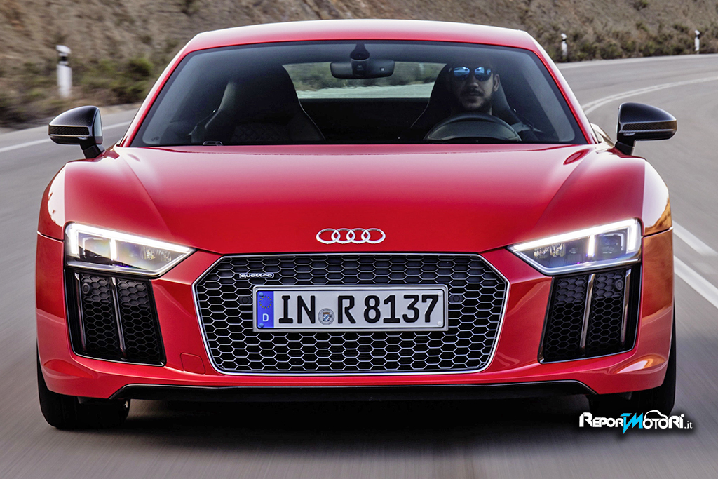 R8 rappresenta la vettura Audi di serie più veloce di tutti i tempi. Il motore V10 in posizione centrale, in combinazione con la trasmissione quattro di nuovissima generazione, garantisce prestazioni straordinarie. La versione plus, che sviluppa 610 CV, accelera da 0 a 100 km/h in soli 3.2 secondi e raggiunge una velocità massima di 330 km/h. Il motore centrale in grado di raggiungere altissimi regimi, la costruzione basata su materiali ultraleggeri, le sospensioni racing e la trasmissione quattro, abbinata ad un sistema di gestione della coppia con funzione torque vectoring, fanno di R8 Coupé una vettura fuori dal comune.