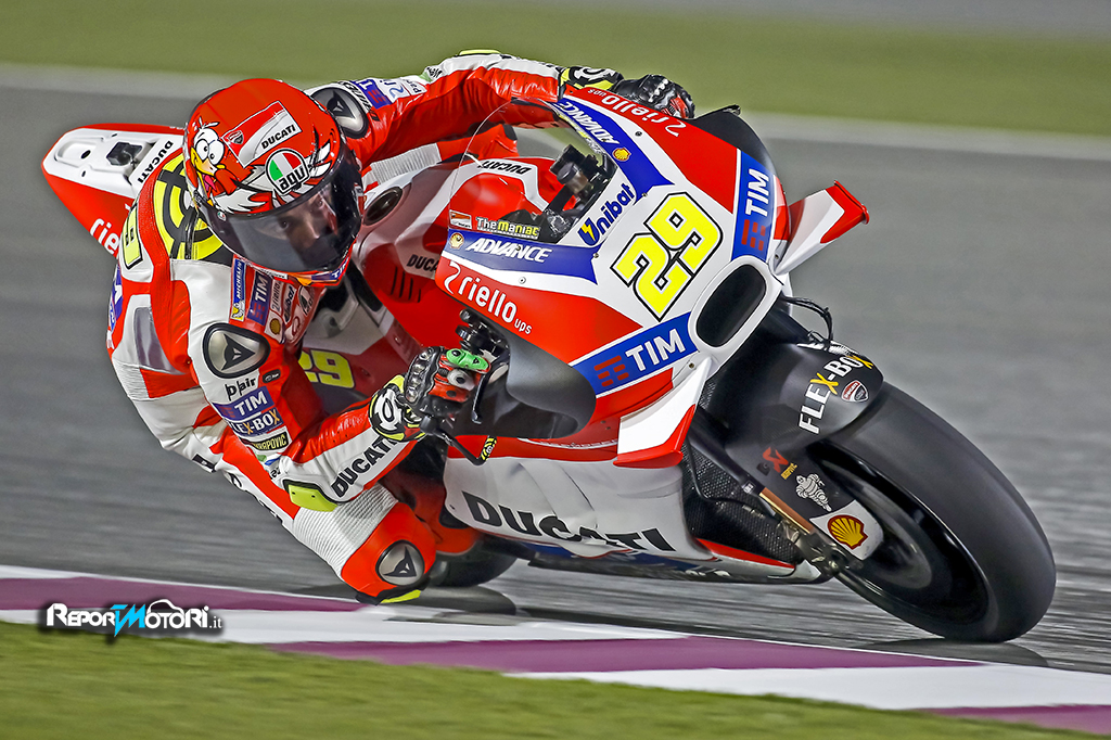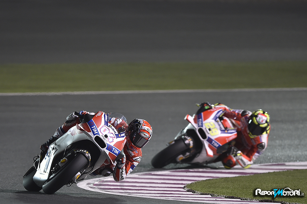L’esordio in gara della nuova Ducati Desmosedici GP è stato sicuramente positivo, e nel corso del weekend a Losail i due piloti della squadra italiana, Andrea Dovizioso e Andrea Iannone, hanno dimostrato di poter lottare ad armi pari con gli altri top rider, sia in prova che in gara.