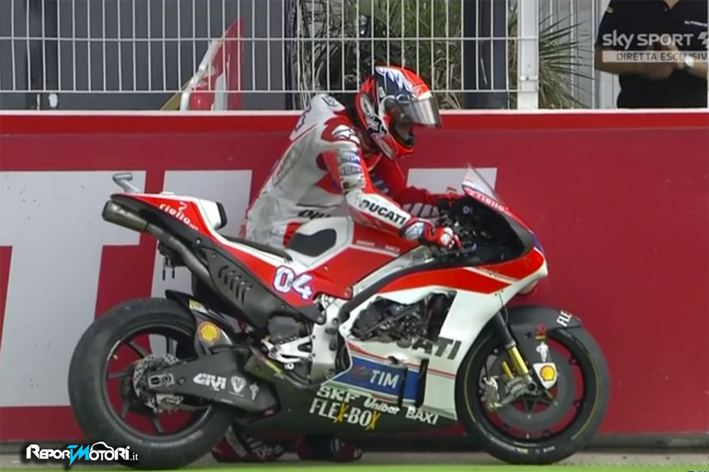 Andrea Iannone centra in pieno in staccata, Andrea Dovizioso e tutto va in fumo per il Ducati Team !