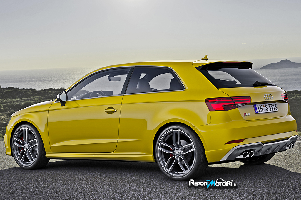 Il posteriore sottolinea la larghezza della nuova A3 grazie alla grafica orizzontale dei gruppi ottici posteriori e ad un’aletta frangivento sopra al nuovo diffusore. La gamma di colori è stata ampliata e ora è possibile scegliere tra molti colori, alcuni dei quali sono nuovi: blu cosmo, grigio Nano, rosso tango e giallo Vegas.
