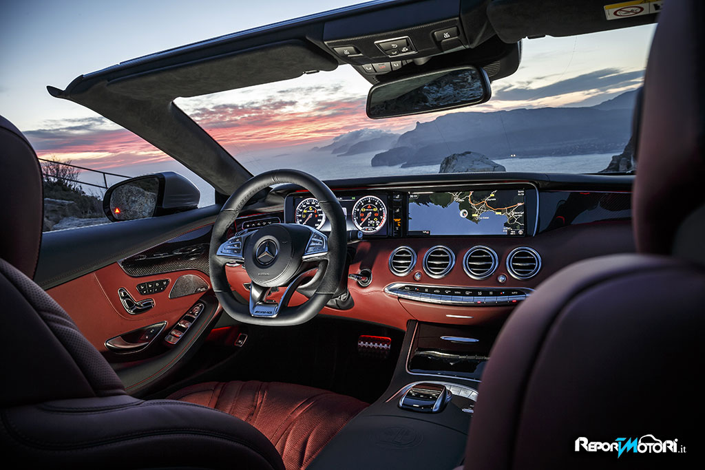 La base su cui si fonda la superiorità e il dinamismo della nuova S Cabrio è costituita dalla struttura della carrozzeria particolarmente rigida, con soluzioni tecnicamente innovative come la paratia posteriore in magnesio a separazione del vano bagagli. Inoltre è stato possibile contenere il peso grazie all’impiego di una batteria agli ioni di litio leggera, di pregiati cerchi in lega AMG fucinati e dell’impianto frenante in materiale composito ad alte prestazioni AMG dal peso ottimizzato: tutti questi elementi sono coerenti con l’ampio impiego dell’alluminio per il rivestimento della scocca, del frontale e della coda della vettura.