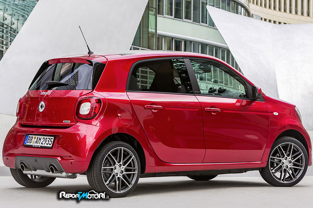 Rispetto alla precedente generazione la potenza nominale e la coppia massima della nuova smart BRABUS sono, infatti, cresciute rispettivamente di 5 kW e 23 Nm, per una potenza complessiva di 80 kW/109 CV a 5.750 giri/min e 170 Nm a 2.000 giri/min. La nuova forfour BRABUS è in grado di accelerare da 0 a 100 km/h in 9,5 secondi e raggiungere una velocità massima di 180 km/h ( 165 km/h fortwo ).