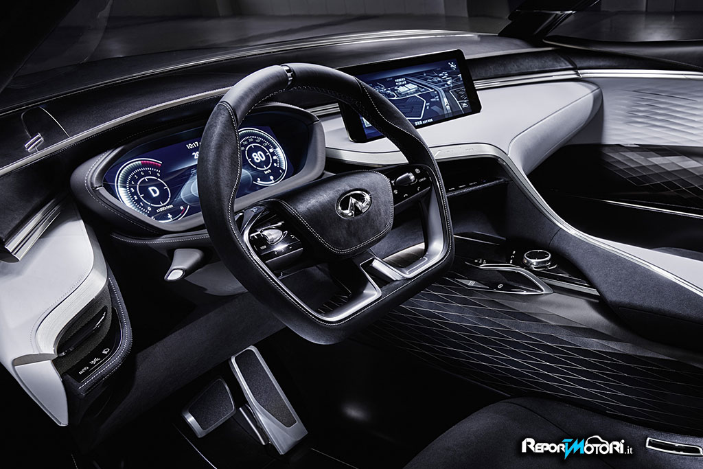 Caratterizzata dalle linee tipiche di design del marchio e una serie di dettagli innovativi, la nuova concept vanta linee esterne propositive e potenti combinate ad un’eleganza che è unicamente Infiniti.