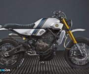 I cerchi originali sono stati invece sostituiti da quelli a raggi e presi dall’ XT1200Z Super Ténéré, con pneumatici Goldentyre GT201 da 19″ anteriore e da 17″ posteriore. Lo scarico, realizzato a mano, è in acciaio ed incorpora un terminale Akrapovic . L’opera è stata completata con l’utilizzo di numerosi accessori originali Yamaha, tra i quali la leva della frizione e dei freni, le pedane e i supporti del cavalletto laterale in lega d’alluminio. La particolare verniciatura in stile anni ottanta conferisce infine a questa nuova Yard Built uno straordinario look retrò minimalista.