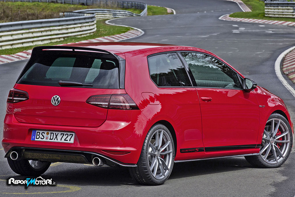 Già questa vettura, con i suoi 265 CV (momentaneamente 290 CV grazie alla funzione boost) e un’aerodinamica completamente ridisegnata, annulla la tradizionale distinzione tra vetture sportive di serie e da competizione. Con la Golf GTI Clubsport S che verrà presentata in anteprima mondiale al raduno GTI sulle rive del Worthersee (Austria, dal 4 al 7 maggio), la Volkswagen celebra ancora una volta la leggendaria Golf sportiva: una potenza di 310 CV, passaggio da 0 a 100 km/h in 5,8 secondi, 265 km/h di velocità massima non limitata e peso a vuoto limitato a 1.360 kg (con guidatore e bagagli).
