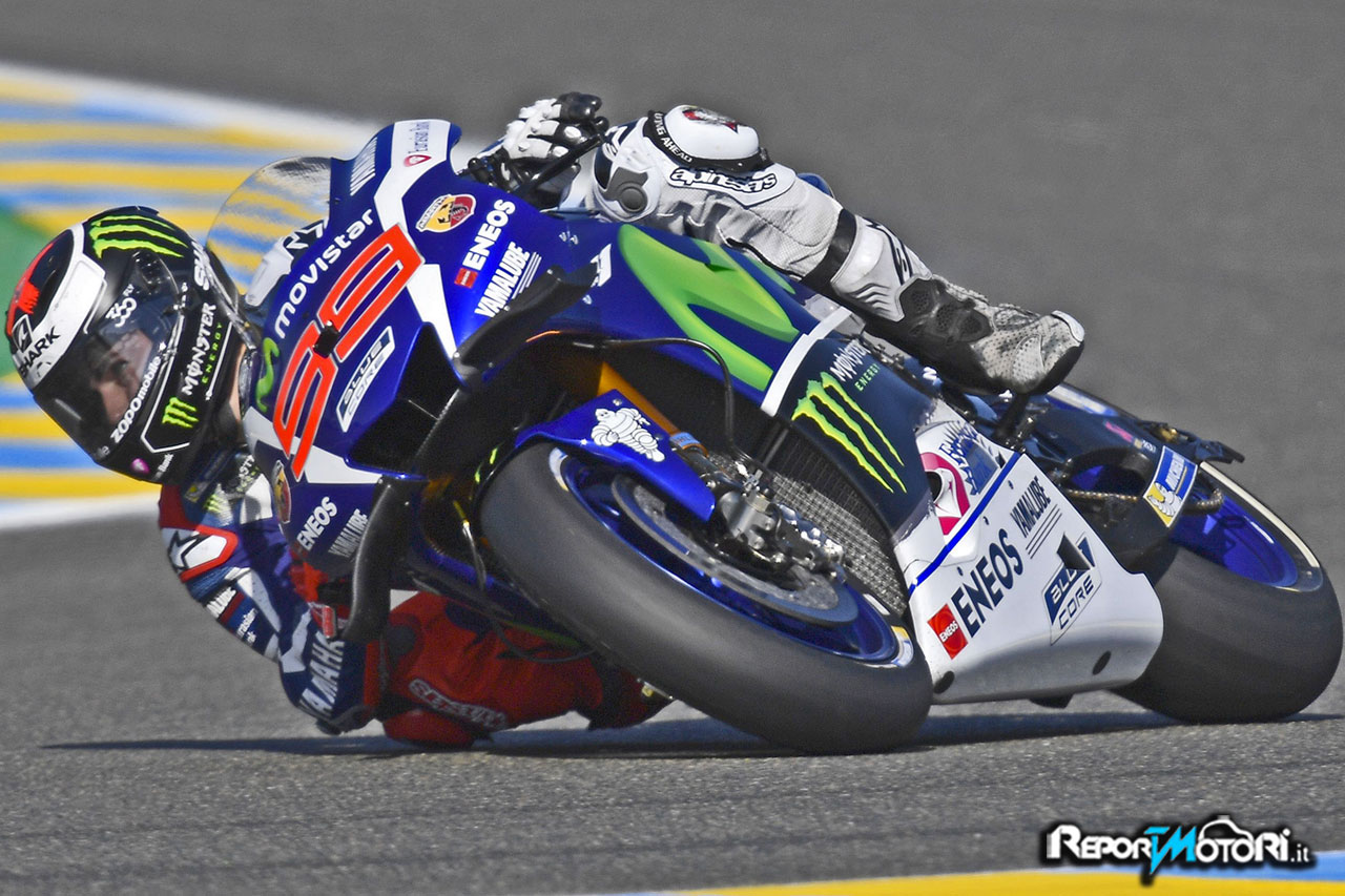 Non c’è storia, è lui, Jorge Lorenzo, il Campione del Mondo che qui in Francia, sul circuito di Le Mans, stabilisce nel secondo turno di prove libere, il miglior tempo.
