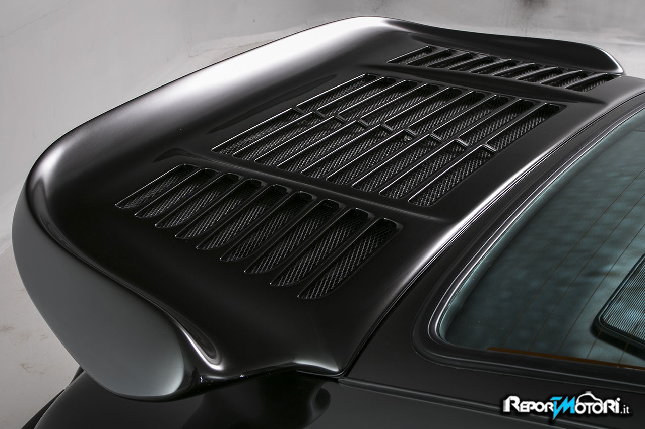 Carrozzeria della X84, fari anteriori e posteriori della 968, prese d’aria, passaruota e alettone presi in prestito dalla mitica 959, la Porsche 964 Turbo Flatnose ha qualcosa di incredibile in quanto a dinamismo e cattiveria .