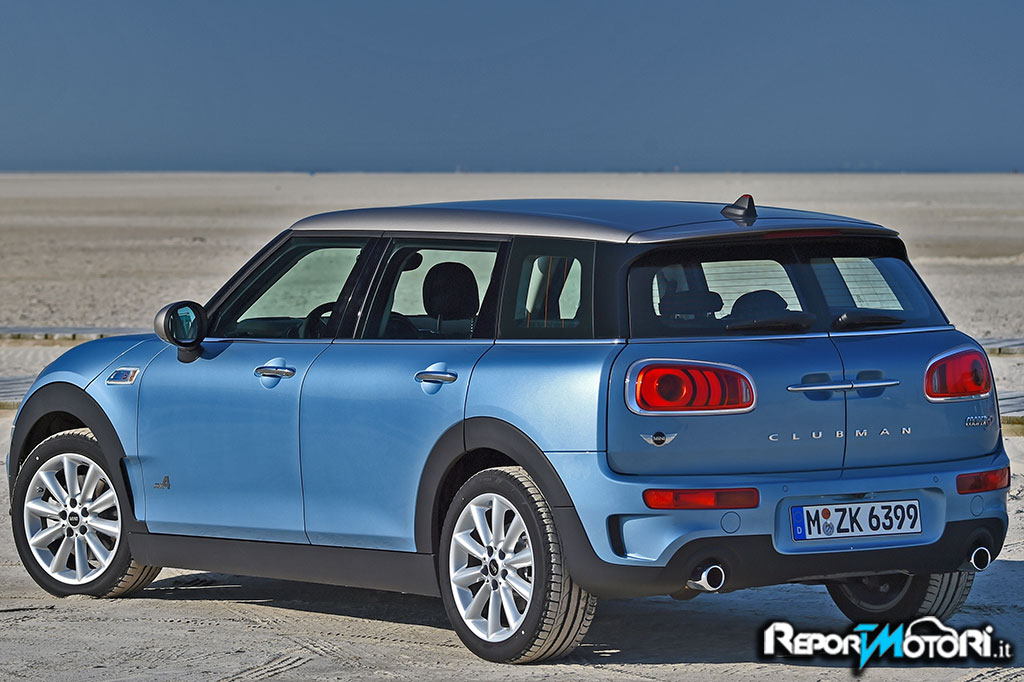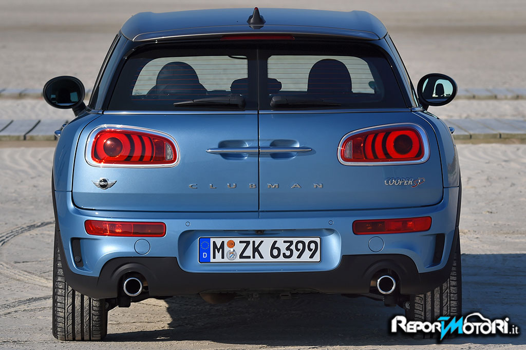 Al posteriore un paraurti aerodinamico e due minacciosi tubi di scarico laterali contribuiscono a caratterizza la linea sportiva della Mini Clubman ALL4 .