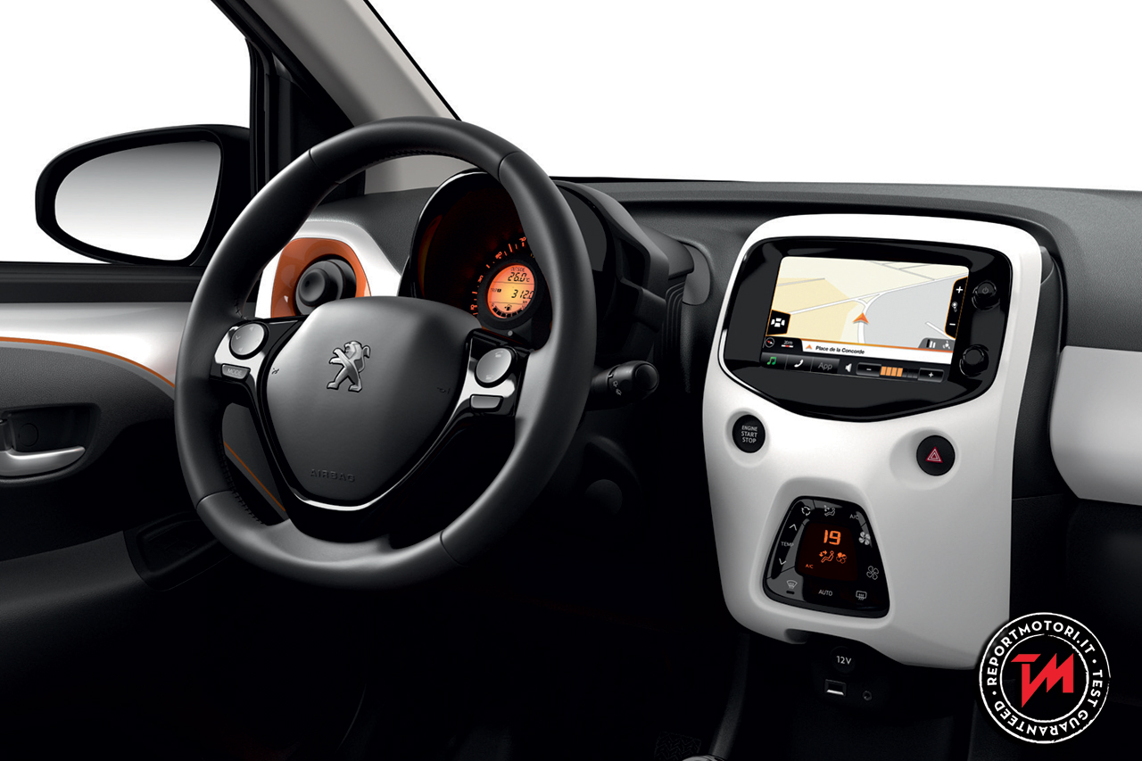 Oltre che sulla cover del telecomando, la “personalizzazione” Roland Garros è presente anche all’interno di questa serie speciale della 108 Top! : decoro interno Porcelaine con profili degli aeratori arancio; interni in tessuto Rajura grigio arancio; profili interni delle portiere anteriori arancio; tappetini specifici con ricamo Roland Garros; soglie porta in alluminio con scritta Peugeot.