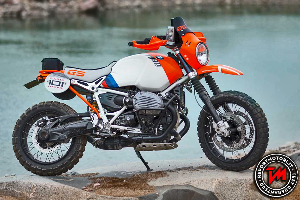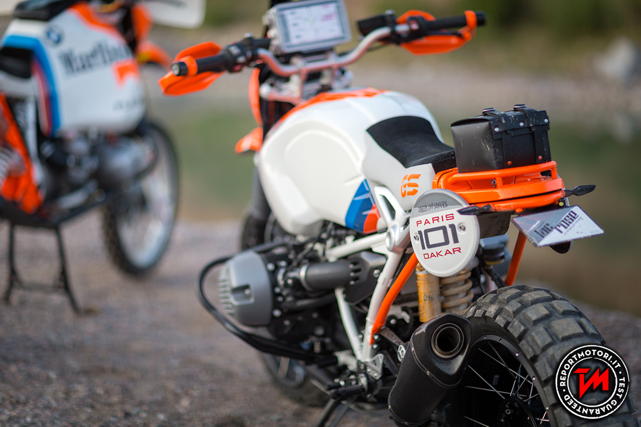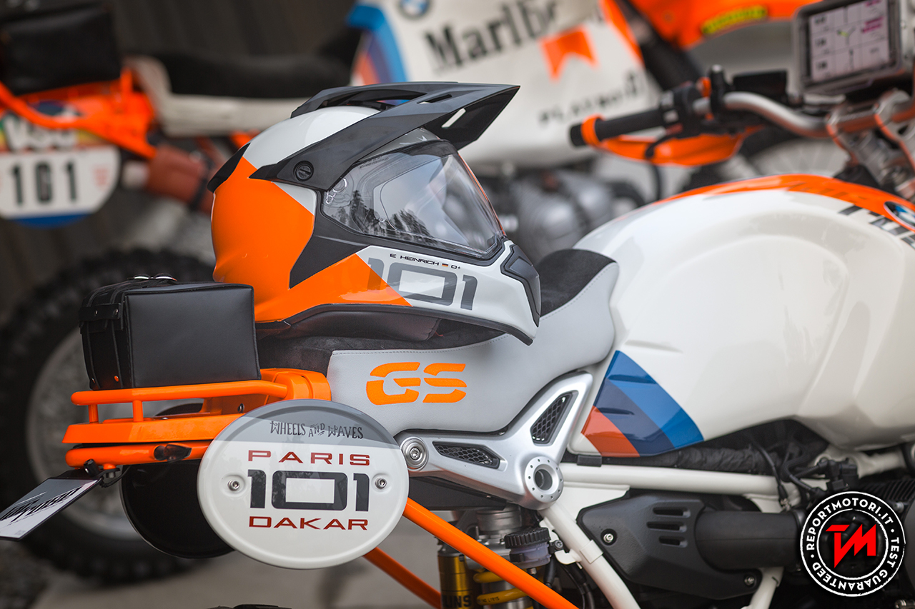 La BMW Motorrad Concetto Lac Rose ha le caratteristiche tipiche della ex moto vincintrice della Paris-Dakar .