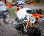Eccezionale le qualità off-road della BMW Motorrad Concept Lac Rose , una moto essenziale, forte di un design originale e rievocativo, arricchita da accessori che ne esaltano il suo spirito off-road, una special pura senza alcun vezzo estetico ma nata per affrontare ogni tipo di percorso e paesaggio.