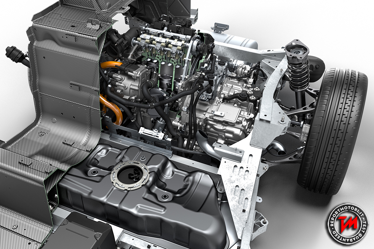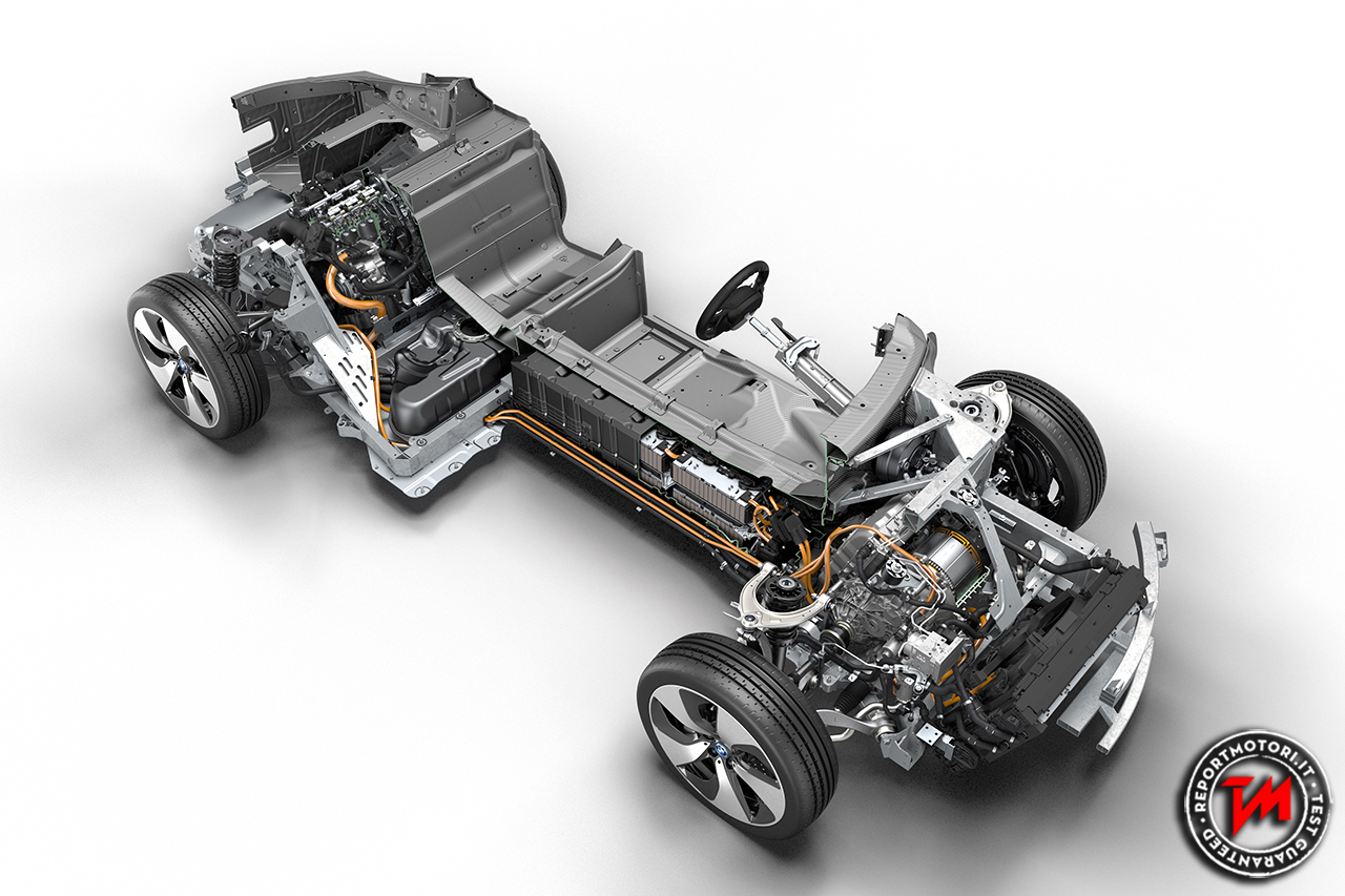 Il sistema propulsivo plug-in-hybrid che alimenta la BMW i8 combina le prestazioni di un’auto sportiva con il risparmio di carburante di un modello di gran lunga inferiore. Il motore a combustione a tre cilindri sviluppa 170 kW/231 CV e aziona le ruote posteriori, mentre il motore elettrico 96 kW/131 CV trasmette la sua potenza all’asse anteriore ed è alimentato da una batteria agli ioni di litio, che può essere caricata collegandola a una presa elettrica convenzionale. L’eccezionale sistema plug-in-hybrid, sviluppato e prodotto dal BMW Group , raggiunge un’autonomia di 37 km nel ciclo di prova UE e una velocità massima di 120 km/h con il solo motore elettrico, garantendo un’esperienza di guida “incollata alla strada” a quattro ruote motrici, caratterizzata da una potente ripresa e da un’ottimale distribuzione della potenza in curva.