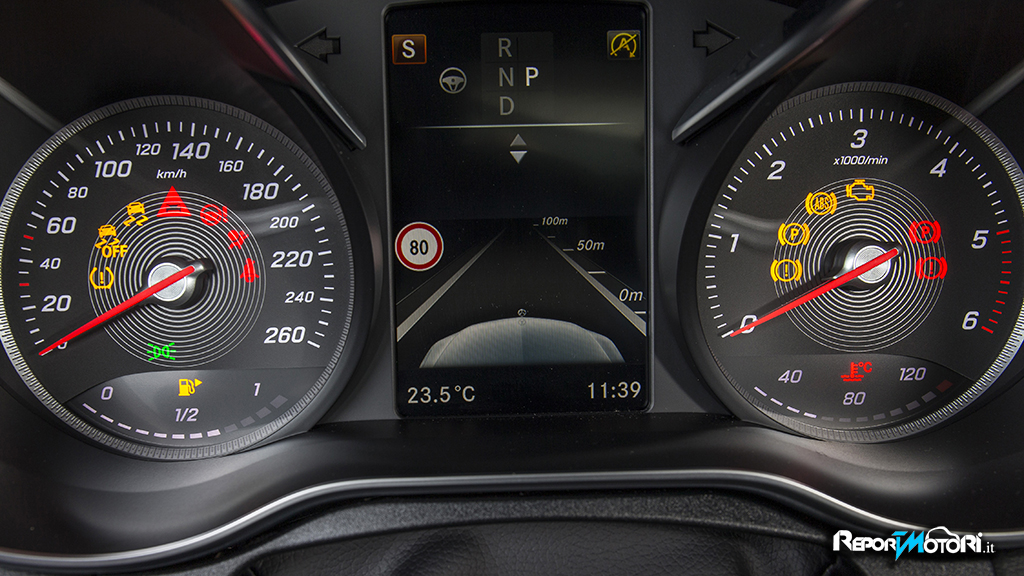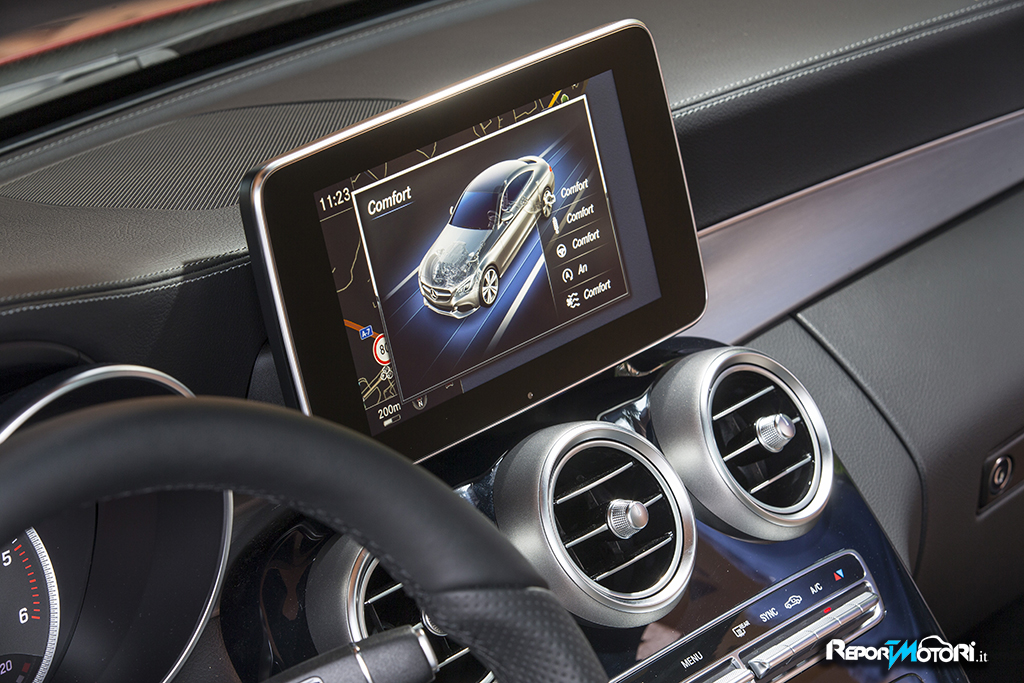 Molto comodo il touch al volante che, anche se dopo un breve utilizzo per prenderne dimestichezza, comporta la possibilità di accedere ad ogni funzionalità elettronica di controllo e dispositiva nel abitacolo, dal navigatore al telefono cellulare in tecnologia NFC e molto altro ma sempre con il grosso vantaggio di mai distogliere le mani dal volante. Infatti il vero valore aggiunto Mercedes lo si nota nella grande attenzione alla sicurezza di guida con un auto che attraverso le telecamere esterne riesce a “leggere” i cartelli stradali dandone informazione sul display al conducente come nel caso del limite di velocità sopraggiunto in quel tratto di strada. La guida intelligente con il sorpasso automatico, il distance pilot, il parcheggio automatico e soprattutto la grande innovazione del Active Breaking Assist , con l’attivazione automatica dei freni nel caso di un ostacolo improvviso, ci porta sempre più verso una nuova concezione di auto, più vista come mezzo intelligente ed attento alle esigenze e sicurezza dei conducenti.