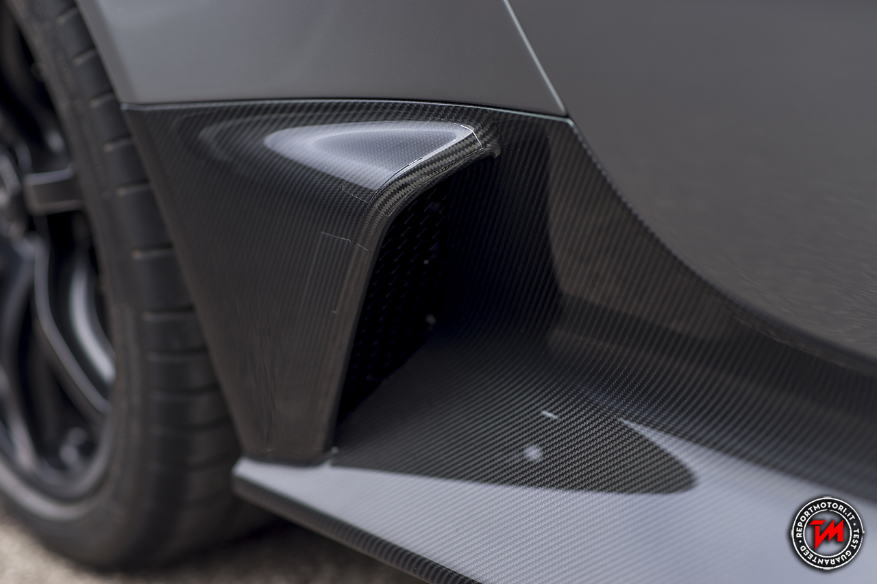 Le differenze più visibili sono i pannelli della carrozzeria in fibra di carbonio, mentre sotto la carrozzeria sono presenti una serie di soluzioni tecniche altamente sportive.