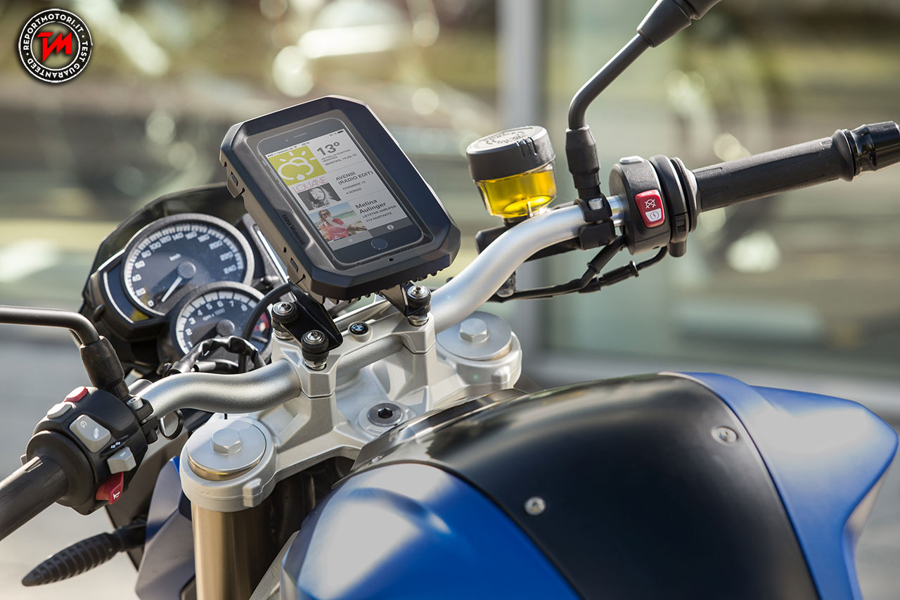 Il montaggio del supporto dello smartphone funziona utilizzando quello del Navigator V di BMW Motorrad (accessorio, non fa parte della fornitura).