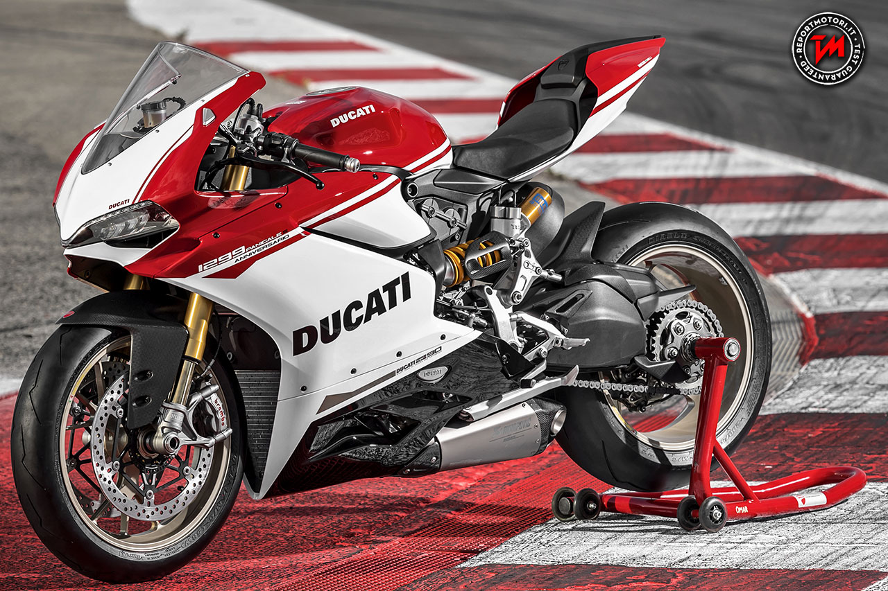 Realizzata in edizione limitata in soli 500 esemplari, la 1299 Panigale S Anniversario presenta livrea e contenuti tecnici inediti. I colori della 1299 Panigale S Anniversario sono ispirati a quelli delle Ducati da corsa. La carenatura in bianco, nero e Rosso Ducati si sposa alla perfezione con il colore oro dei cerchi ruota.