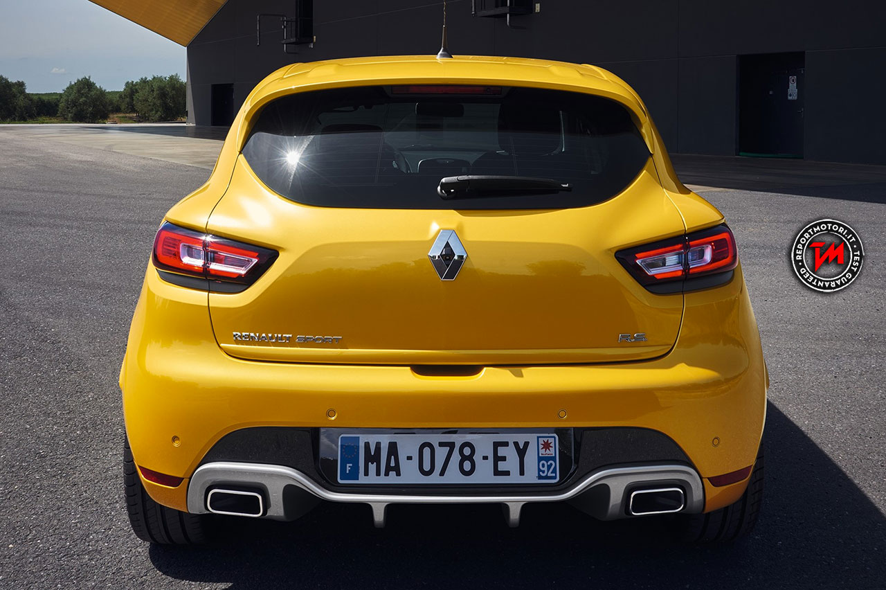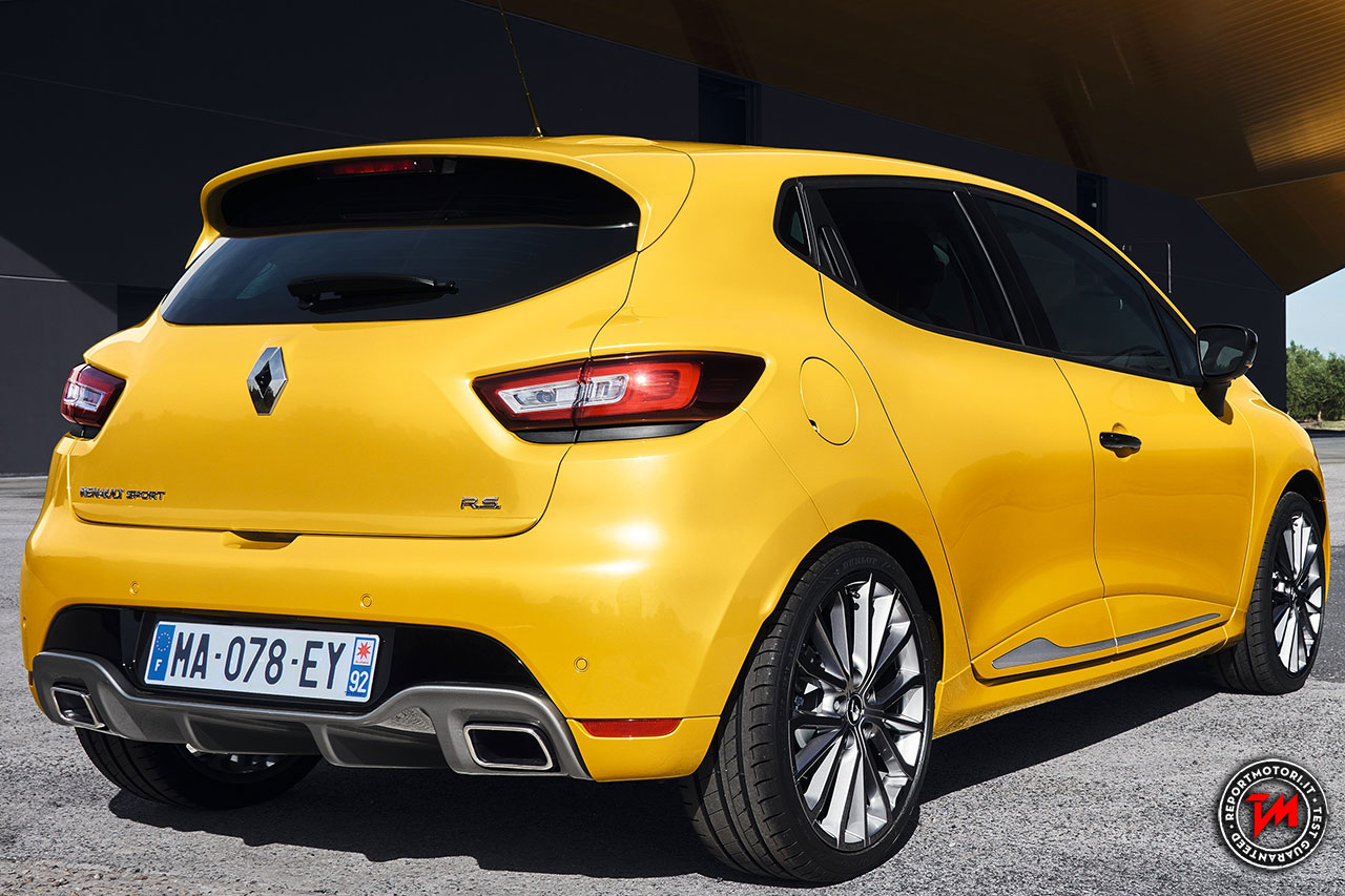 Nuova CLIO R.S. propone anche nuovi cerchi 18 pollici e modanature laterali specifiche. Nella parte posteriore è equipaggiata con uno spoiler sportivo, un diffusore funzionale e un doppio terminale di scarico. I gruppi ottici posteriori riprendono la firma luminosa a forma di C. La griffe R.S. (Renault Sport) è applicata sotto il logo anteriore, sui cerchi e al posteriore del veicolo.