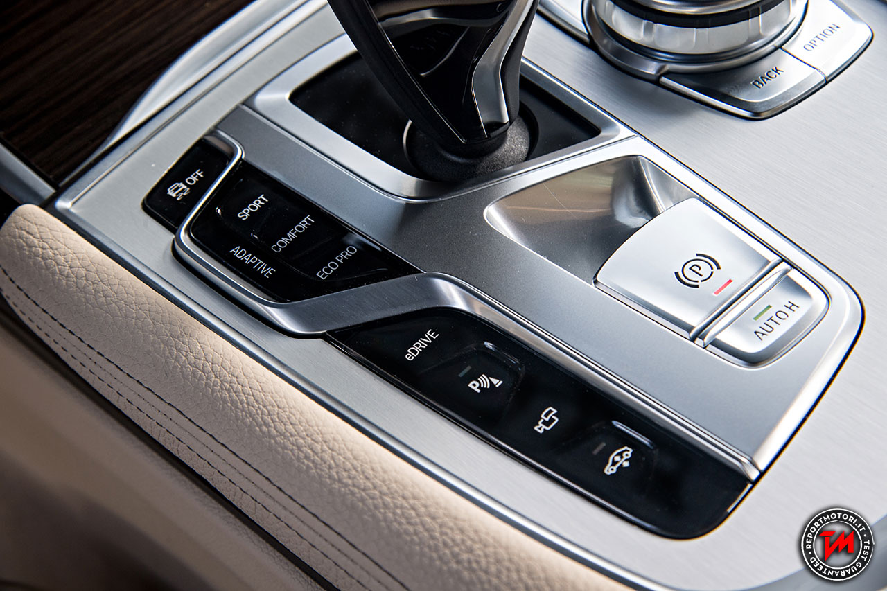 Una caratteristica della BMW 740e iPerformance è il controllo del propulsore ibrido dalla consolle centrale: nella modalità Auto eDrive tutto è gestito autonomamente dalla centralina.