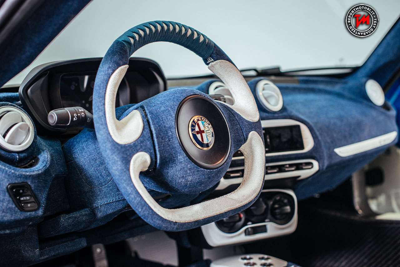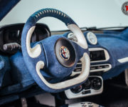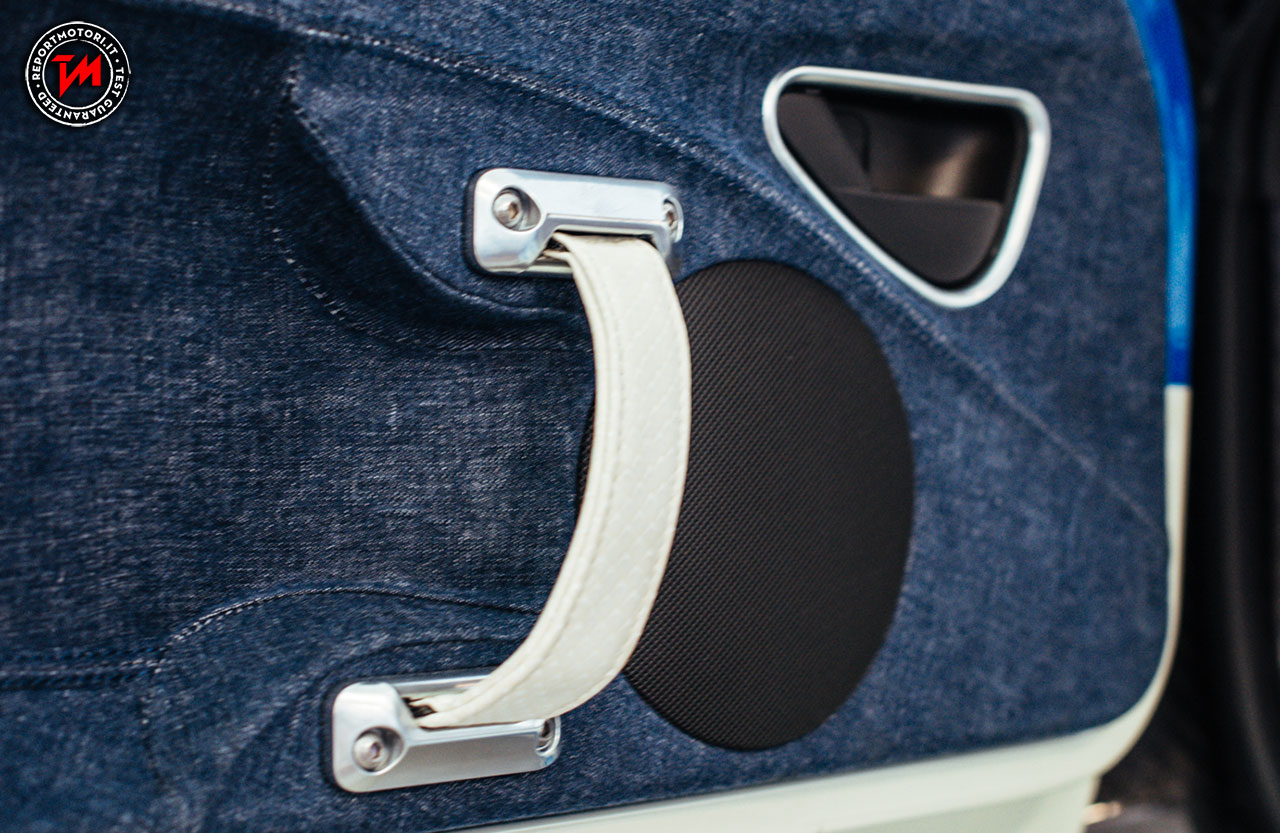 Interessante è la scelta dei materiali per il rivestimento interno, come il denim giapponese Kubaro e la pelle Foglizzo che richiama le squame della carpa, sono un chiaro riferimento al Giappone, così come la particolare lavorazione della corona del volante e della leva del freno a mano che si ispira al Tsukamaki, l’arte di rivestire l’elsa della Katana.