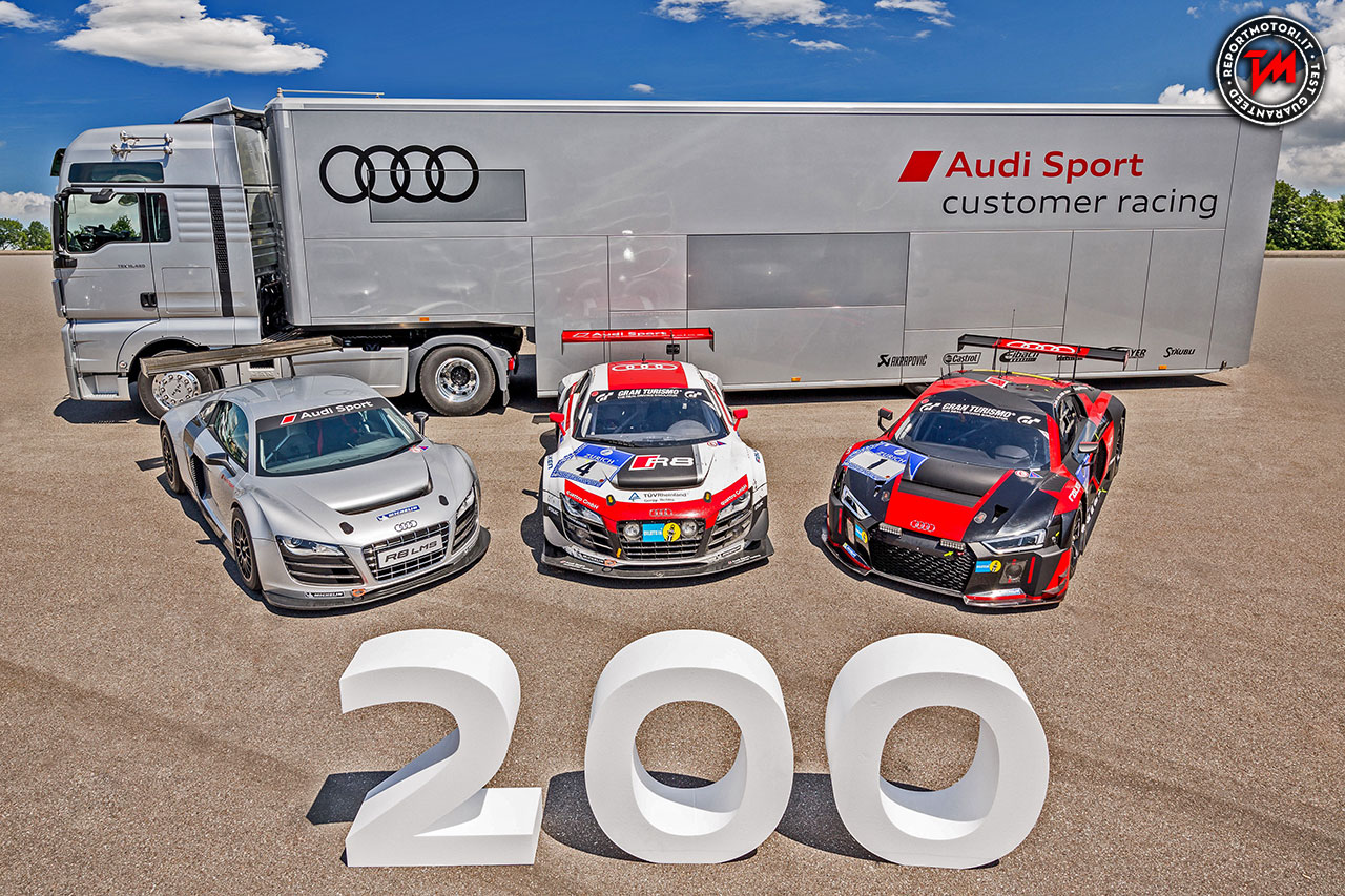 La duecentesima Audi R8 LMS è stata costruita nel Neckarsulm a Luglio ed andrà in forze al Team Montaplast by Land-Motorsport, una squadra che dopo sole sei gare è leader nel mondiale con i piloti Christopher Mies e Connor De Philippi .