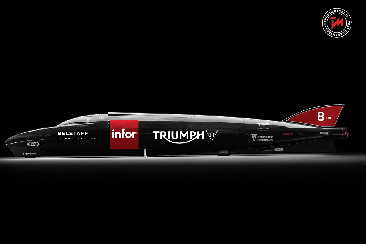 L’obiettivo di Triumph è quello di superare il record corrente che si attesta a 376,363 mph: allo scopo di battere ogni guiness, ha costruito una Rocket Infor Streamliner con più di 1000 cavalli!
