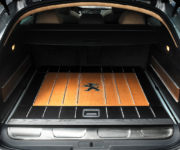 Esteso anche all’interno l’uso del legno fossile sulla Peugeot 508 RXH Castagna Gris : il vano bagagli è rivestito con tre pannelli in essenza scura a riprendere il medesimo tono usati all’esterno e per i due inserti della plancia, toni chiari al centro per ricordare la similitudine con il tessuto interno.