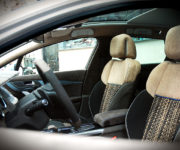 Sfumature di grigi con riflessi marroni si sposano al nero intenso dei tessuti suede, al materiale in stampa 2D ad “effetto legno” che evoca le tinte del rovere usato per la parte alta dei sedili e per rivestire quanto al di sopra della linea di cintura.