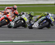 Valentino Rossi: “Per il campionato sono solo tre punti, ma sono molto felice perché è stata una dura battaglia. Ho combattuto per tutta la gara e mai ho mollato. Purtroppo, dopo otto o nove giri, ho iniziato a scivolare molto sul retro, quindi era molto difficile controllare la moto, ma alla fine è stato molto divertente con Marc e Crutchlow e sono molto contento di questo podio. E ‘stata una grande gara e una grande battaglia, una lotta doppia, perché all’inizio della gara e anche alla fine è stato fantastico. Mi sono divertito molto e sono felice di questo podio, perché sapevo che avrei dovuto lottare dal primo all’ultimo giro per arrivare davanti. Sull’asciutto non siamo stati così forti. Sapevamo che avremmo lottato con le gomme nella seconda parte della gara e in effetti è stato così. E ‘stata una grande battaglia con Marquez e anche con Crutchlow e Iannone. Ho cercato il massimo e sono arrivato sul podio. Non è molto importante per i punti in campionato, ma molto importante per me e per la squadra. Marque mi ha toccato due o tre volte. La battaglia è stata buona, ma difficile, mi sono divertito un sacco. Quando si tenta alla fine di lottare per il podio, tra Marquez e me, è sempre difficile, ma è stata una buona battaglia e sono curioso di rivederla”.