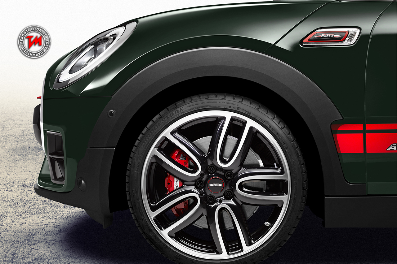 Nuova MINI John Cooper Works Clubman dalle caratteristiche di performance uniche, proprietà prestazionali affascinanti e sound fortemente emozionante; trasmissione di potenza a trazione ottimizzata a tutte le quattro ruote; accelerazione da 0 a 100 km/h in 6,3 secondi (cambio automatico: 6,3 secondi); impianto di scarico sportivo, impianto frenante sportivo Brembo, cerchi in lega John Cooper Works da 18 pollici Black Grip Spoke e regolazione della stabilità di guida DSC (Dynamic Stability Control) incluso DTC (Dynamic Traction Control), EDLC (Electronic Differential Lock Control) e Performance Control di serie; Dynamic Damper Control e cerchi in lega da 19 pollici offerti come optional.