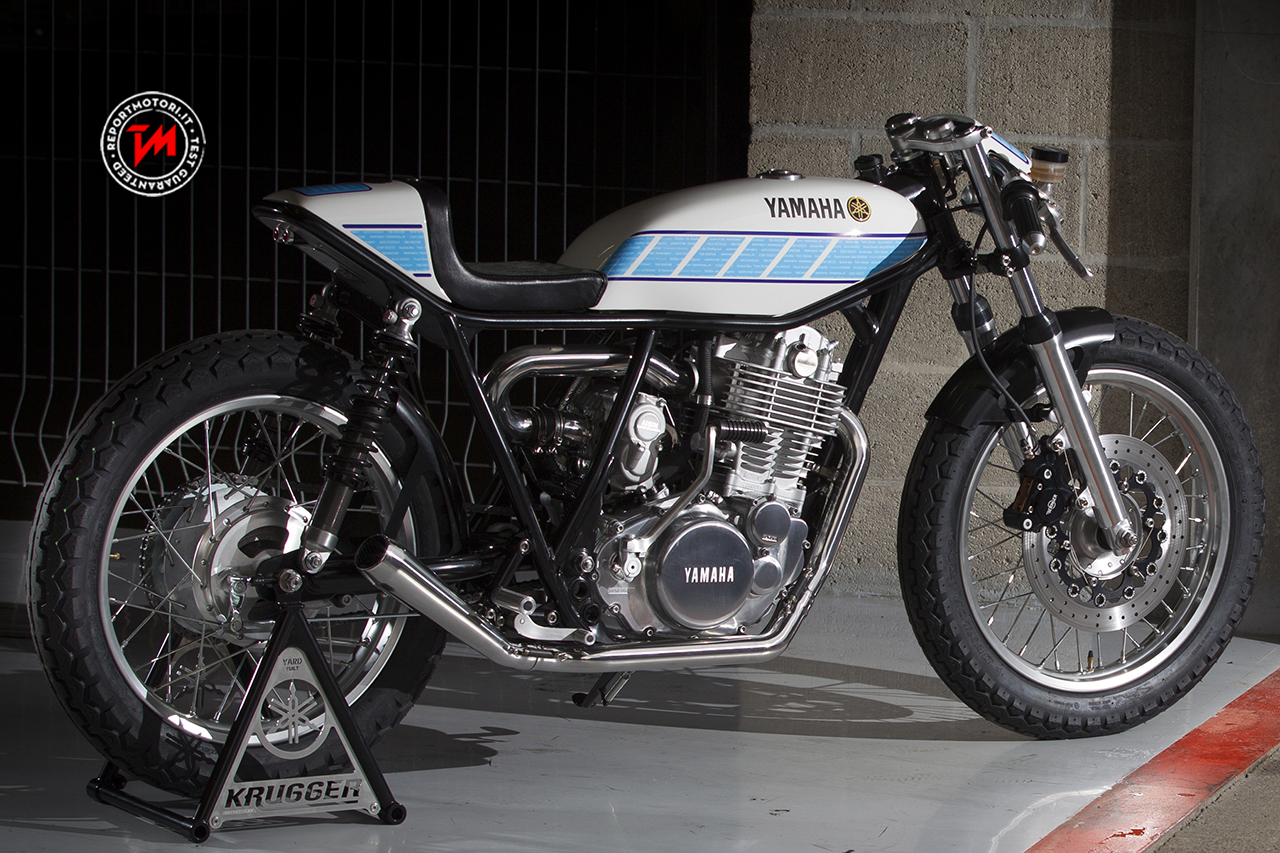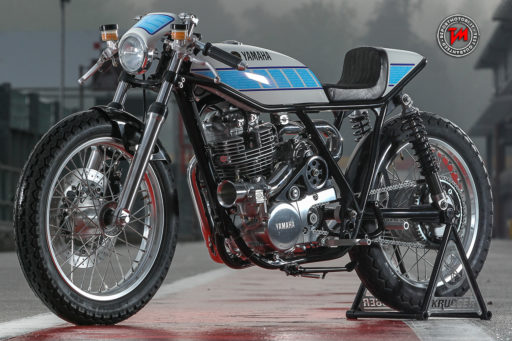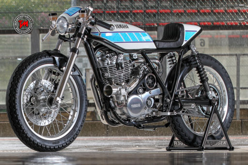 Per l’ultima opera in ordine di tempo, Yamaha ha chiamato nel proprio workshop il famoso preparatore belga Fred “Krugger” Bertrand che, grazie alle sue sapienti mani, ha creato un eccezionale esemplare su base SR400 che celebra la storia tre diapason nella MotoGP.