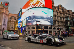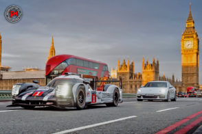 La più veloce vettura da corsa benzina/elettrica, la Porsche 919 LMP1 Hybrid, di fianco alla nuova Panamera 4 E-Hybrid, ha percorso le strade londinesi, portando la tecnologia da pista su strada.