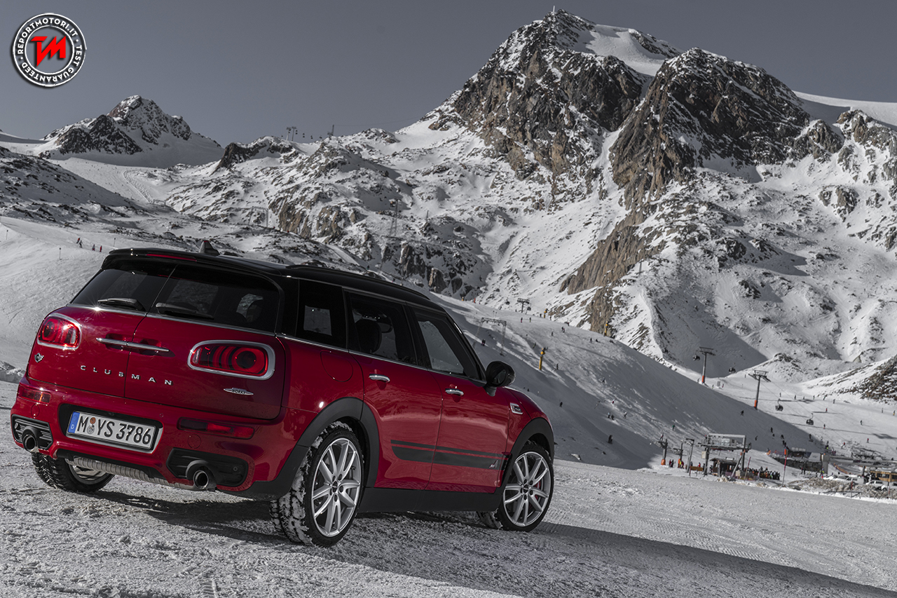 Per la prima volta l’attuale motore a benzina da 2 000 cc, sviluppato appositamente per i modelli John Cooper Works, è stato combinato con la nuova generazione di trazione integrale ALL4; quattro cilindri con tecnologia MINI TwinPower Turbo e 170 kW/231 CV; incremento della potenza motore di 29 kW/39 CV rispetto alla MINI Cooper S Clubman; nuova versione del sistema ALL4 a regolazione elettroidraulica a peso ed efficienza ottimizzati; cambio manuale a sei rapporti di serie, cambio Steptronic sportivo a otto rapporti offerto come optional; consumo di carburante nel ciclo combinato UE: 7,4 l/100 km (cambio automatico: 6,8 l/100 km), emissioni di CO2 nel ciclo combinato UE: 168 g/km (154 g/km).