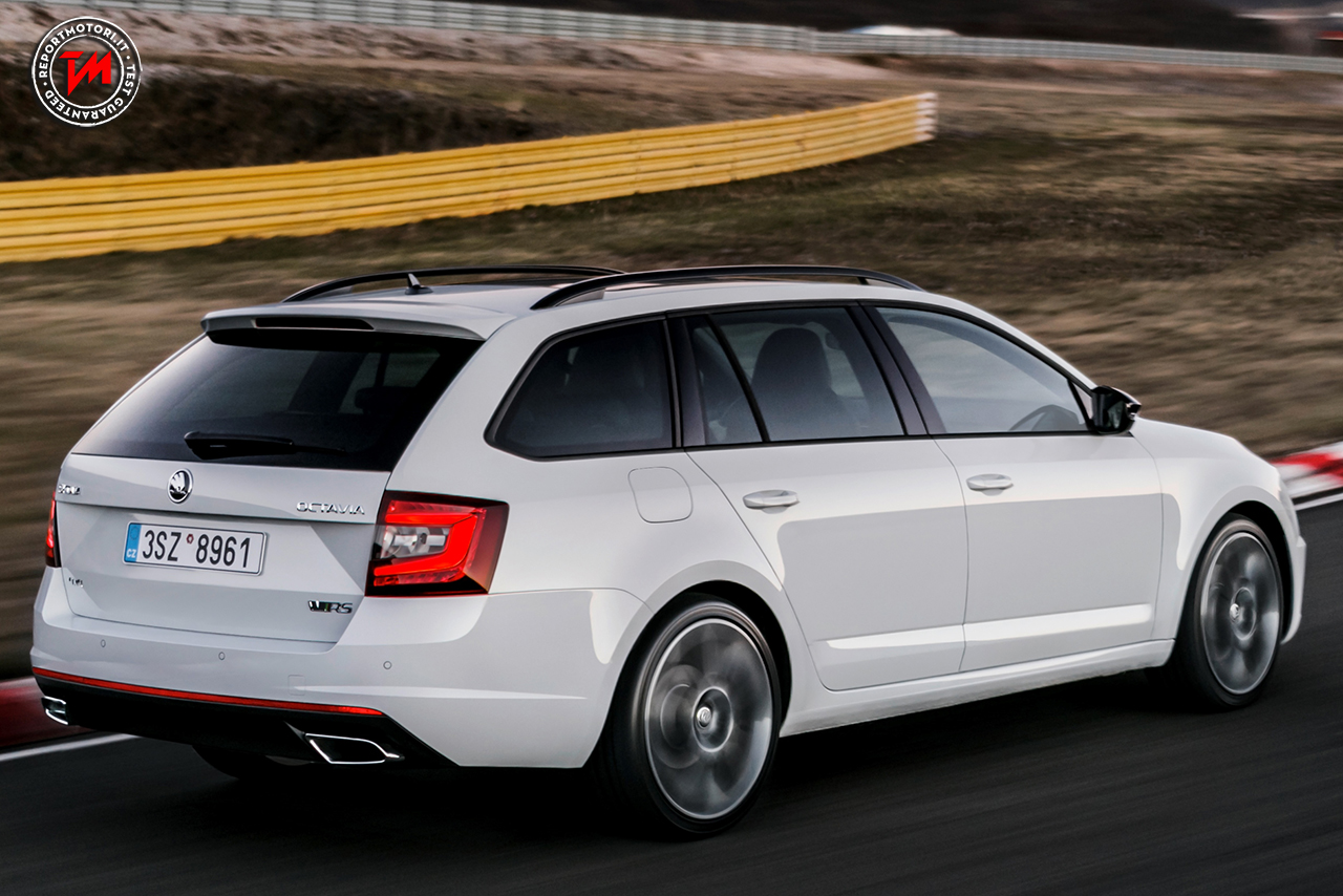 L’assetto sportivo più basso di 15 mm rispetto ai modelli di serie, la carreggiata di 30 mm più larga che in passato e le pinze dei freni rosse sottolineano il carattere sportivo della nuova Octavia RS . I cerchi di serie sono da 17 pollici, a richiesta Skoda monta cerchi da 18 pollici e da 19 pollici color argento. Lo sterzo progressivo, il Performance Mode Select con Performance Sound generator, il controllo di stabilità ESC con bloccaggio trasversale elettronico XDS+ e le sospensioni a controllo elettronico DCC aumentano il piacere di guida. Il sistema DCC permette di scegliere tra le configurazioni Comfort, Normal e Sport. Il 2.0 TSI eroga 230 CV con coppia massima di 350 Nm, disponibile da 1.500 a 4.600 giri. Il moto raggiunge le ruote anteriori attraverso il cambio manuale a 6 rapporti o il cambio DSG a 6 rapporti, optional. La berlina con cambio manuale accelera da 0 a 100 km/h in 6,7 secondi, la velocità massima è limitata elettronicamente a 250 km/h. Il consumo nel ciclo combinato è di 6,5 l/100 km (149 g/km di CO2).