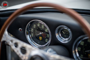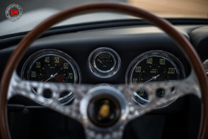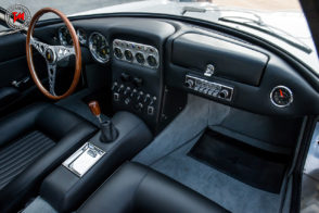 Il telaio e i pannelli della carrozzeria originali sono stati riportati alla geometria originaria, con un ampio intervento su motore, sistema di raffreddamento, impianto frenante e impianto carburante, per garantire sicurezza, ma anche autenticità. Gli interni in pelle nera sono stati rinnovati impiegando i procedimenti classici dell’epoca, mentre il volante in legno e i pedali originali dell’acceleratore, della frizione e del freno sono stati restaurati mantenendo i piccoli segni dell’usura del tempo. Anche la radio della vettura è quella originale, tuttora perfettamente funzionante, proprio come nel 1964 quando venne consegnata al primo proprietario.