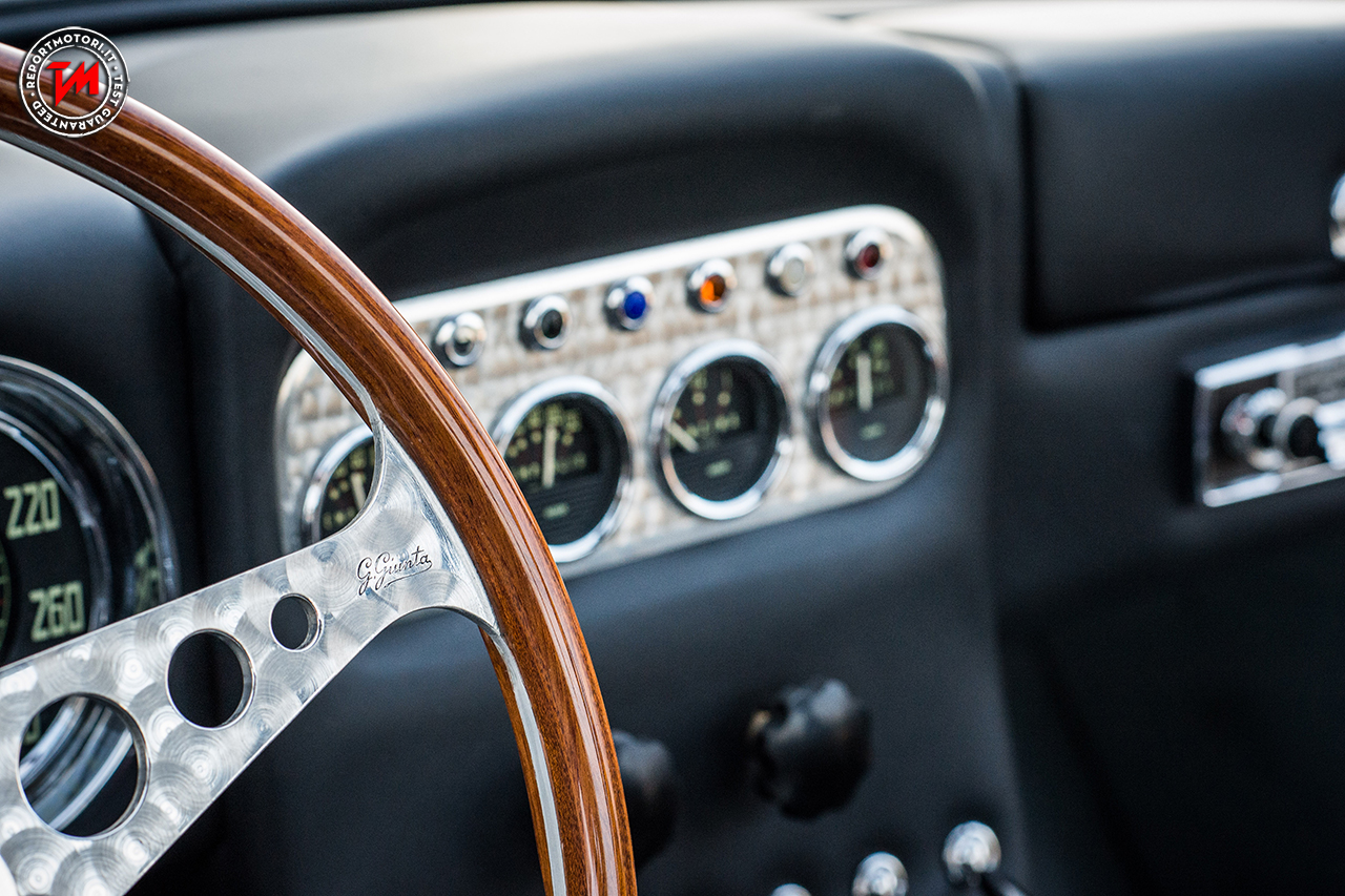 La carrozzeria è stata riverniciata con una delicata tonalità di bianco utilizzando la stessa formula e le stesse tecniche della miscela nitroacrilica originale: sono stati applicati 22 strati di vernice con carteggiatura a umido manuale tra uno strato e l’altro, conferendo alla vettura un’eleganza particolare e accentuandone le linee. I cerchi originali sono stati restaurati e autenticati dal fornitore dell’epoca, Ruote Borrani di Milano, e, come nel primo allestimento, completati con pneumatici Pirelli Cinturato 205/15 nuovi. L’originalità rappresentava un elemento fondamentale per il proprietario e per questo sono stati mantenuti segni e dettagli che preservassero il sapore autentico di questa vettura.