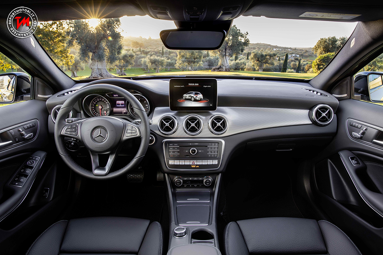 Novità assoluta è la telecamera a 360 gradi che registra e permette la visualizzazione sul display centrale di tutto ciò che accade attorno alla vettura, sono quattro infatti le telecamere poste sulla nuova GLA, anteriormente, ai lati nei retrovisori esterni e posteriormente.