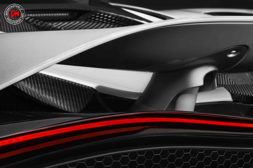 Uno spoiler posteriore attivo che si estende su tutta la larghezza del posteriore della seconda-generazione della McLaren Super Series si sposta verso l’alto e aumenta l’angolo per ottimizzare l’efficienza aerodinamica e nel suo massimo angolo