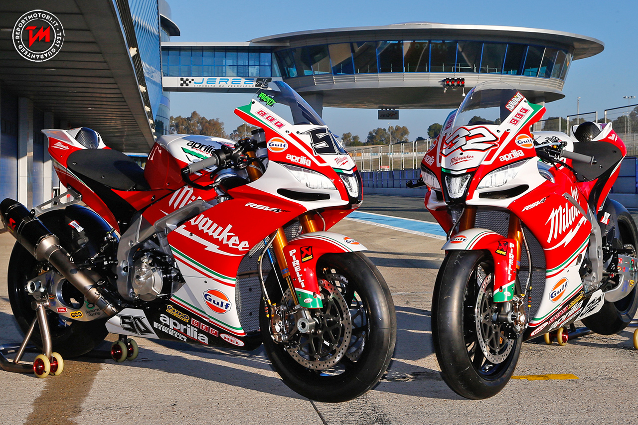 Il Milwaukee Aprilia ha svelato la nuova livrea 2017 della RSV4RFs al primo test del MOTUL FIM Superbike World Championship, mostrando i nuovi colori sulla pit lane del circuito di Jerez.