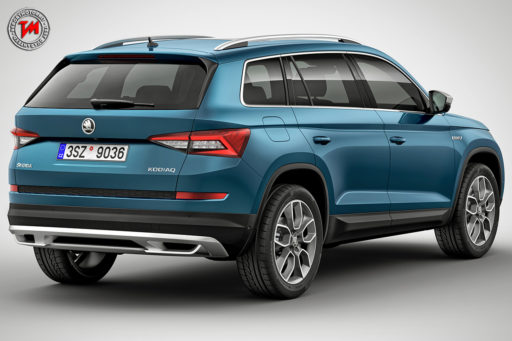 Skoda Kodiaq Scout è riconoscibile anche per i finestrini posteriori e il lunotto oscurati (SunSet). Il nome della specifica versione è visibile su una targhetta posta sul passaruota anteriore e vano portaoggetti.