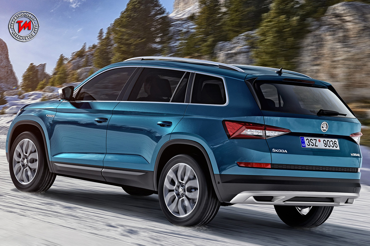 Gli interni sono poi caratterizzati da volante multifunzione, Ambient Light con sistema di illuminazione LED degli interni disponibile in dieci colori, otto altoparlanti, sedili con logo Kodiaq e decorazioni delle porte in Alcantara, pedali in acciaio, tappetini in tessuto e logo Kodiaq sui listelli battitacco delle portiere anteriori. Sullo schermo in plancia il conducente può richiamare i dati più utili alla guida su fondi accidentati.