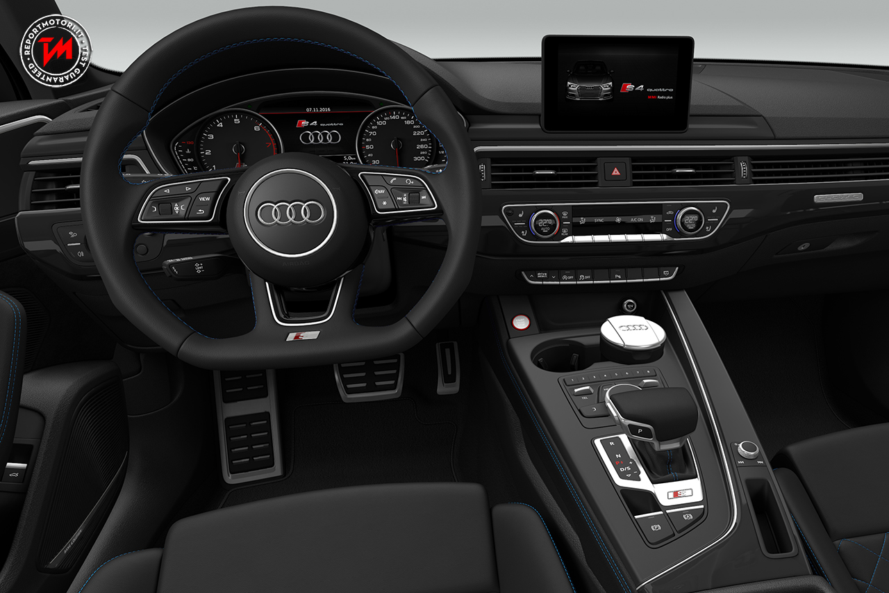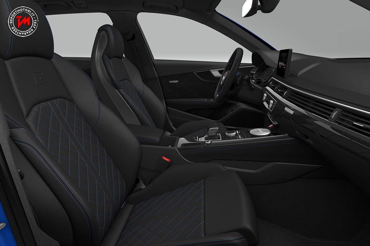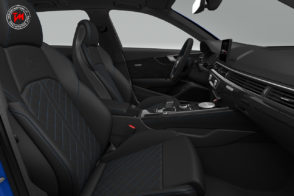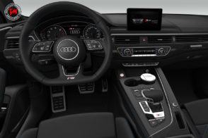 Gli interni rivestiti in pelle Nappa presentano cuciture in rosso in omaggio alla sportività delle versioni Audi “S”. Il volante e il pomello del cambio sono rivestiti in Alcantara nera con cuciture rosse. Di grande pregio infine, gli inserti verniciati in Grigio Signal.
