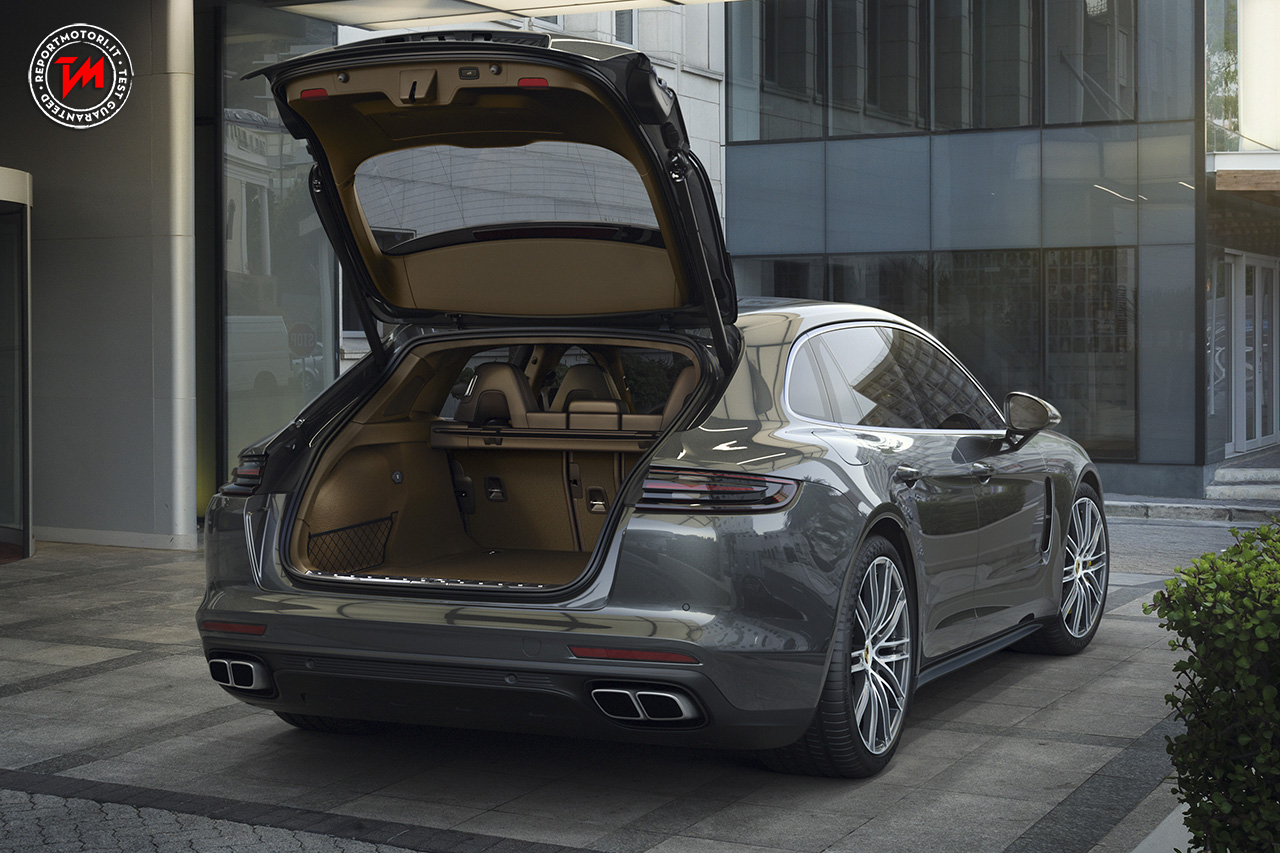 Nella Sport Turismo, la linea del tetto più alta facilita l’accesso alla vettura nella zona posteriore e assicura uno spazio nettamente più ampio nella zona della testa. L’ampia apertura del portellone posteriore, ad azionamento elettrico di serie, e il bordo del vano di carico alto solo 628 mm, rendono molto più semplici le operazioni di carico del vano bagagli. Fino al bordo superiore dei sedili posteriori, la Sport Turismo offre un volume di carico pari a 520 litri (la Panamera 4 E-Hybrid Sport Turismo: 425 litri), ben 20 litri in più rispetto alla berlina sportiva. Caricando il vano bagagli fino al tetto e con i sedili posteriori ribaltati, il volume di carico aumenta di circa 50 litri. Gli schienali dei tre sedili posteriori possono essere reclinati separatamente o completamente (rapporto 40:20:40), lo sblocco dal vano bagagli è elettrico. Con tutti gli schienali reclinati, la superficie di carico è pressoché piatta. In questo caso, il volume di carico aumenta fino a 1.390 litri (Panamera 4 E-Hybrid Sport Turismo: 1.295 litri).