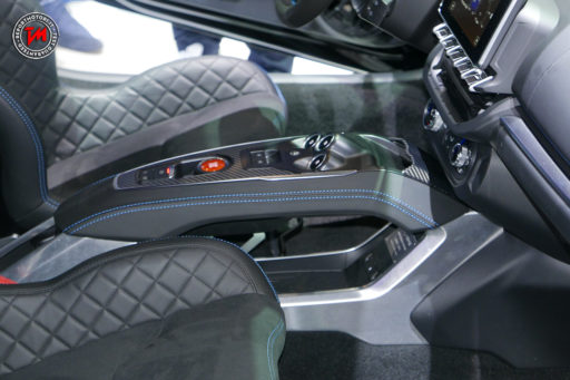 Il serbatoio carburante è dietro l’asse anteriore, il motore (si trova in posizione centrale posteriore) è un quattro cilindri in linea, turbo, con presa d’aria dinamica, che eroga una potenza massima di 252 cavalli e 320 Nm di coppia massima, il che tradotto in performance pure, significa un rapporto peso potenza di 4,3 kg/cv ed uno 0-100 km/h in soli 4,5 secondi.